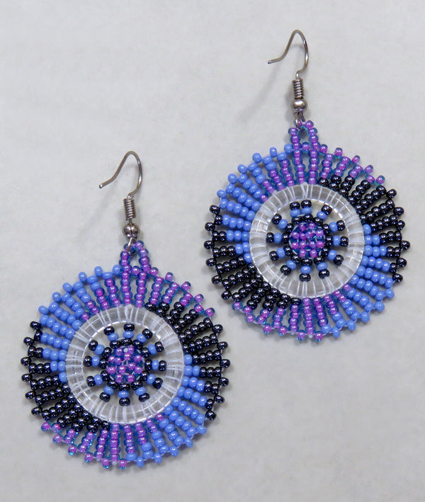 These gorgeous earrings are hand-beaded around an interior circle with a distinctly African flavor.